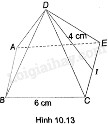 Cho hình chóp tứ giác đều D.ABCE có cạnh đáy bằng 6cm, trung đoạn bằng 4cm như Hình 10.13
