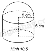 Một hộp đựng mĩ phẩm được thiết kế thân hộp có dạng hình trụ, nắp hộp có dạng nửa hình cầu với kích thước như Hình 10.5. Nếu sơn bên ngoài vỏ hộp (không sơn đáy) thì diện tích cần sơn là bao nhiêu?