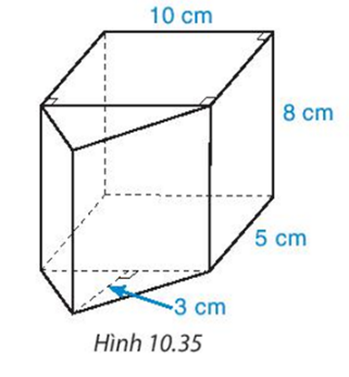 Một hình gồm hai lăng trụ đứng ghép lại với các kích thước như ở hình 10.35. Tính thể tích hình ghép.
