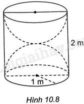 Vì đường tròn đáy của hình trụ là đường tròn lớn của mỗi nửa hình cầu nên bán kính của mỗi nửa hình cầu là \(R = 1m\).