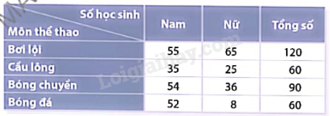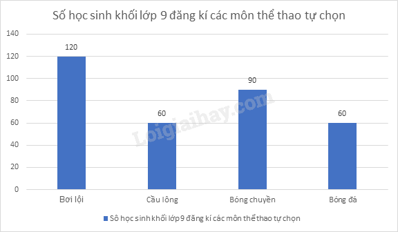 Bảng dưới thống kê số học sinh khối lớp 9 của trường đăng kí học các môn thể thao tự chọn: