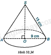 Cho hình nón có bán kính đáy bằng 9cm, độ dài đường sinh bằng 15cm (H.10.34).