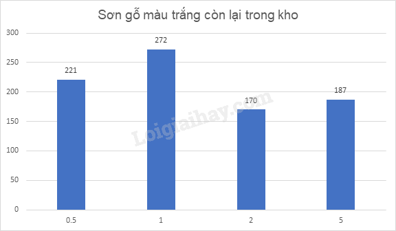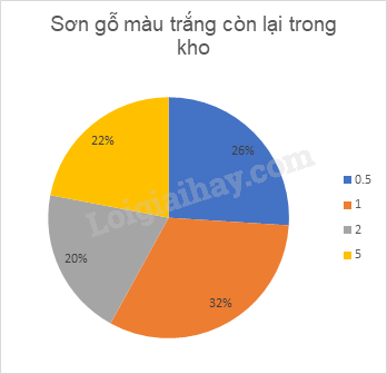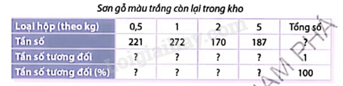 b) Trong kho còn bao nhiêu hộp sơn gỗ màu trắng? Loại hộp nặng trên 1 kg có chiếm 50% số hộp còn lại trong kho không?