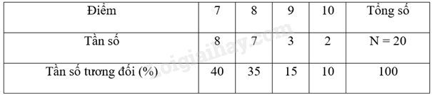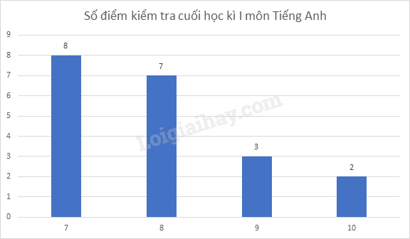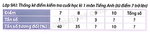 Trường Trung học cơ sở Hoà Bình tổ chức kiểm tra cuối học kì 1 cho học sinh toàn khối lớp 9. Bảng dưới biểu diễn số liệu về điểm từ 7 đến 10 môn Tiếng Anh của học sinh lớp 9A1:
