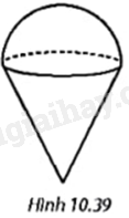 Một chiếc kem ốc quế gồm hai phần: Phần phía dưới dạng hình nón có chiều cao gấp đôi bán kính đáy, phần trên là nửa hình cầu có đường kính bằng đường kính đáy của hình nón phía dưới (H.10.39). Thể tích phần kem phía trên bằng \(200c{m^3}\). Tính thể tích của cả chiếc kem.