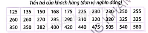Để điều tra sức mua của thị trường, siêu thị U tìm hiểu số tiền ghi trên hoá đơn của một số khách hàng được chọn ngẫu nhiên. Kết quả thống kê được ghi lại trong bảng sau: