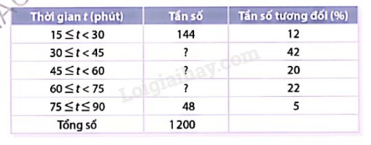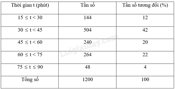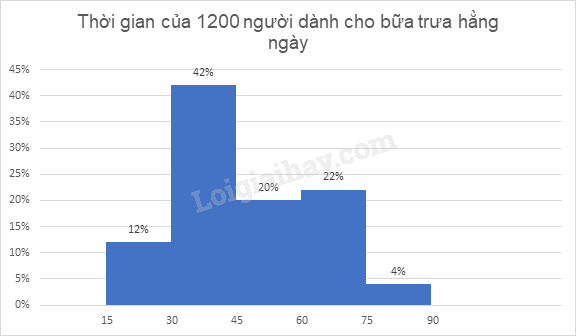 Bảng dưới được thiết lập để biểu diễn kết quả cuộc điều tra 1200 người về thời gian họ dành cho bữa ăn trưa hằng ngày: