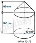 Một dụng cụ gồm một phần có dạng hình trụ và một phần có dạng hình nón với các kích thước như Hình 10.16.