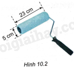 Một trục lăn sơn có dạng hình trụ, đường kính của đường tròn đáy bằng 5cm, chiều dài bằng 23cm (H.10.2). Sau khi lăn trọn vẹn liên tục 15 vòng thì diện tích phần sơn được trên mặt tường phẳng là bao nhiêu?
