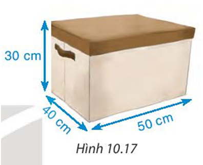 Một chiếc hộp đựng đồ đa năng có dạng hình hộp chữ nhật với khung bằng thép, bên ngoài phủ vải và kích thước như hình 10.17