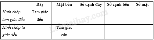 * Sử dụng kiến thức về hình chóp tam giác đều để tìm số mặt bên, mặt đáy, cạnh bên, cạnh đáy của hình chóp tam giác đều: Hình chóp tam giác đều có: