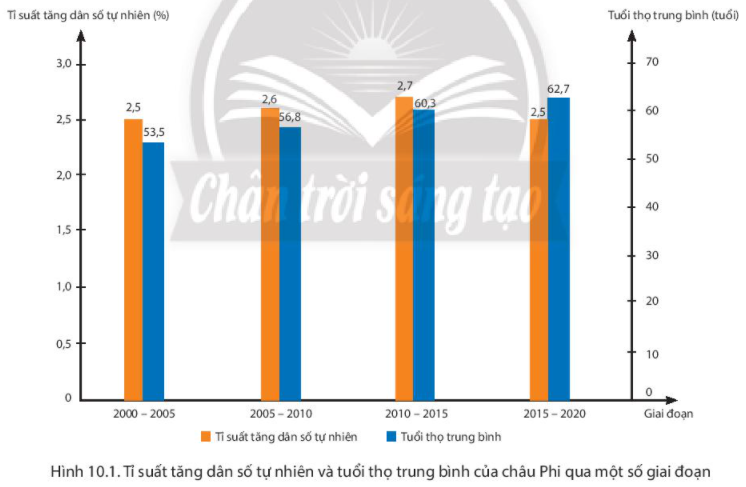 - Nhận xét tỉ suất gia tăng dân số tự nhiên của châu Phi từ giai đoạn 2000 - 2005 đến giai đoạn 2015 - 2020.