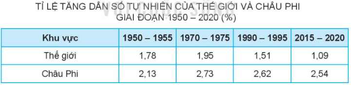 Dựa vào thông tin và bảng trong mục a, hãy trình bày vấn đề tăng dân số tự nhiên ở châu Phi.