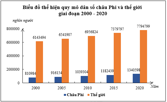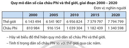 * Tính tỉ trọng dân số châu Phi so với thế giới qua các năm