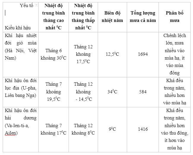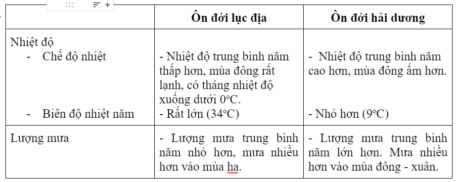 - So sánh khí hậu ôn đới hải dương và ôn đới lục địa: