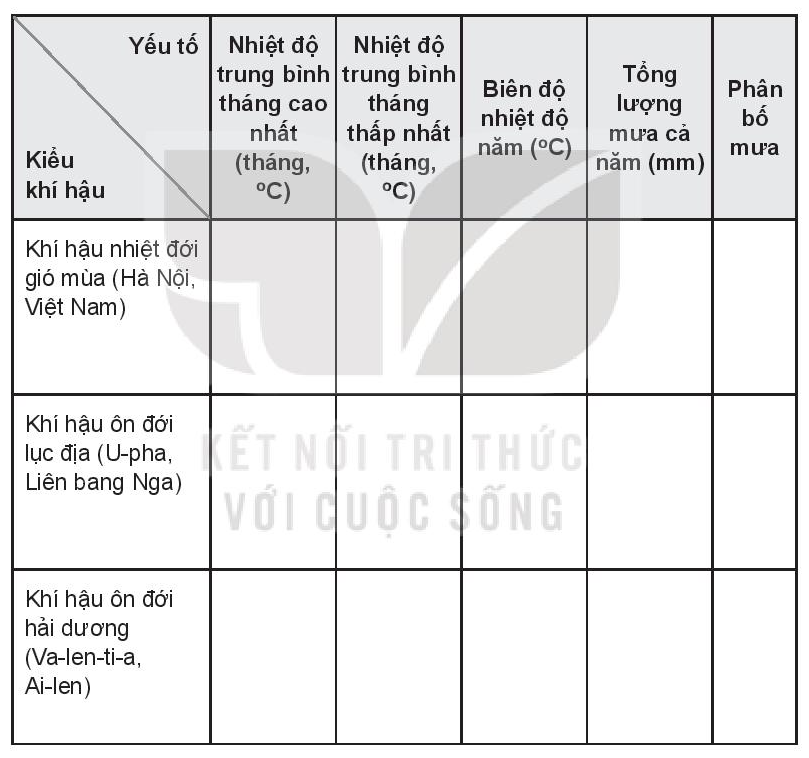 - So sánh sự giống nhau và khác nhau của kiểu khí hậu ôn đới hải dương với kiểu khí hậu ôn đới lục địa.