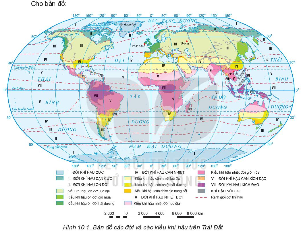 a. Khí hậu trên Trái Đất chia thành 7 đới khí hậu.