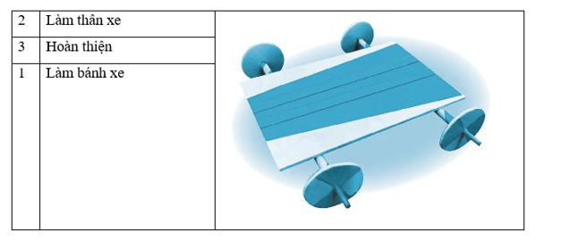 Viết số thứ tự các bước làm xe đồ chơi vào ô trống trong bảng sau:
