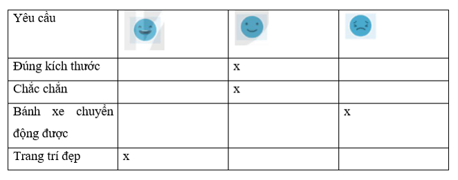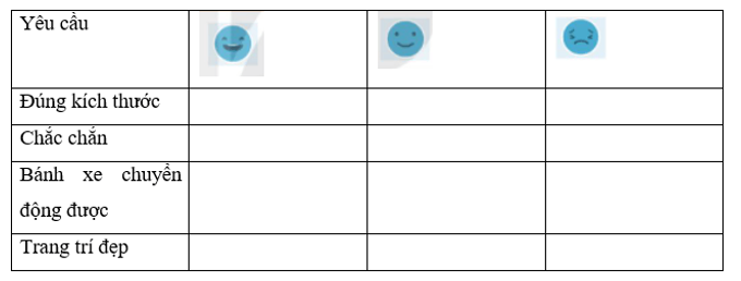 Quan sát xe đồ chơi của em và tự đánh giá vào bảng sau: