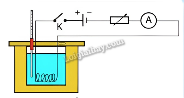 Hình 10.4. Sơ đồ mô tả thi nghiệm khảo sát sự phụ thuộc năng lượng điện vào cường độ dòng điện