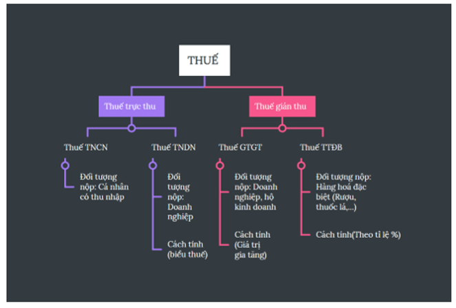 - Thuế giá trị gia tăng (VAT): Khi mua sắm hàng hóa và dịch vụ, gia đình em cũng phải trả một phần thuế này.