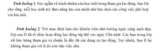 b) Em hãy nhận xét thái độ, hành vi của các bạn trong lớp D và bạn B ở tình huống 2. Nếu là D em sẽ giải thích như thế nào để B tích cực tham gia các hoạt động lao động.