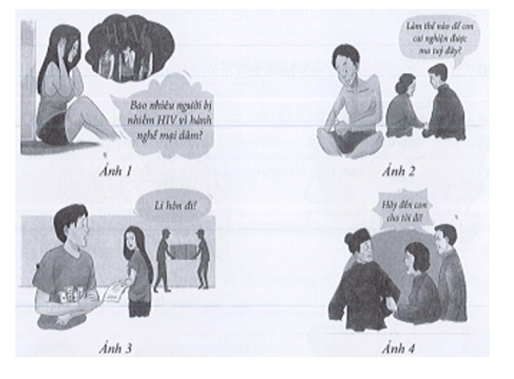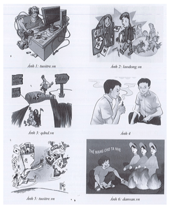 Em hãy quan sát và cho biết mỗi hình ảnh dưới đây nói về tệ nạn xã hội nào.