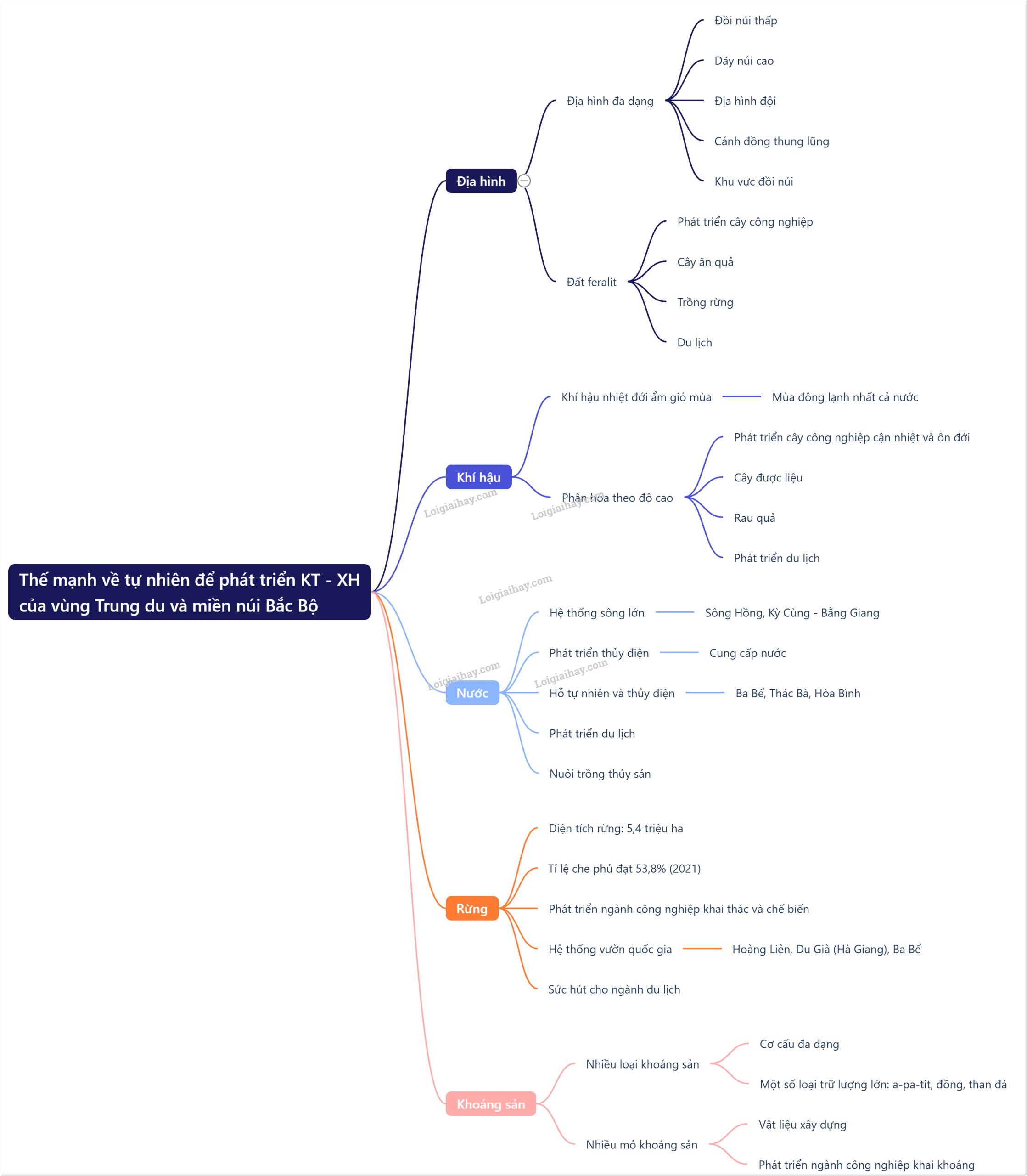 Vẽ sơ đồ tư duy thể hiện thế mạnh về tự nhiên để phát triển kinh tế - xã hội của vùng Trung du và miền núi Bắc Bộ