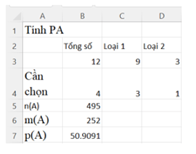 Bước 2. Tính xác suất biến cố A trong Excel: