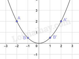 Trên mặt phẳng tọa độ, lấy các điểm A(-2;-2), B(-1; \(\frac{1}{2}\)), O(0;0), B’(1; \(\frac{1}{2}\)), A’(2;2)