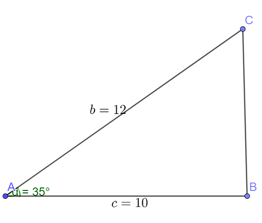 \(S = \frac{1}{2}cb\sin A = \frac{1}{2}.10.12.\sin 35^\circ \simeq 34,41\) (cm2)