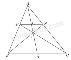 Cho tam giác ABC có M, N là hai điểm lần lượt thuộc các cạnh AB, AC sao cho \(MN\parallel BC\). Gọi I, P, Q lần lượt là giao điểm của BN và CM, AI và MN, AI và BC. Chứng minh: