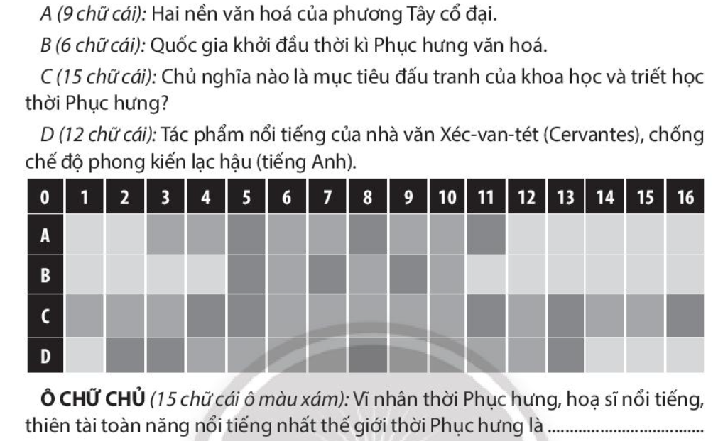 - Ô CHỮ C: CHỦ NGHĨA NHÂN VĂN