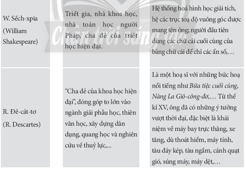 +R.Đê-các-tơ; + Vê-da-lơ +Cô-péc-ních; + G.Ga-li-ê