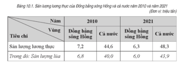 Năm 2021, sản lượng lúa so với tổng sản lượng lương thực của vùng Đồng bằng sông Hồng chiếm: (6 : 6,3) x 100 = 95,2%.