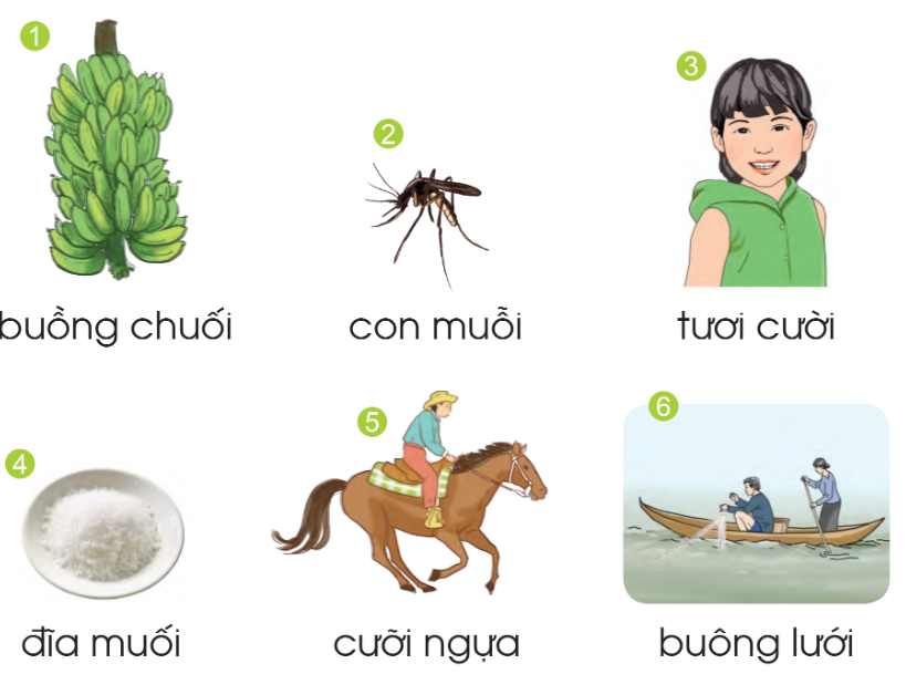 Tiếng có vần uôi là: chuối, muỗi, muối,