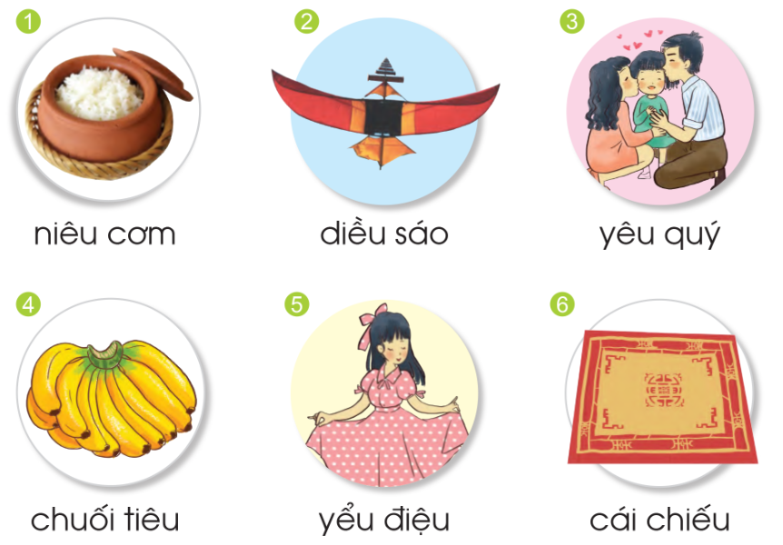 Tiếng có vần iêu là: niêu, diều, tiêu, điệu, chiếu