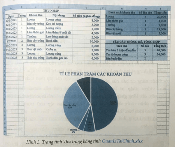 Với trang tính Tổng hợp trong bảng tính QuanLiTaiChinh.xlsx như Hình 1, phát biểu nào dưới đây là sai?