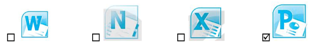 Nháy đúp chuột vào biểu tượng nào sau đây trên màn hình nền để khởi động phần mềm trình chiếu PowerPoint? Đánh dấu ✔ vào ô trống trước đáp án đúng.