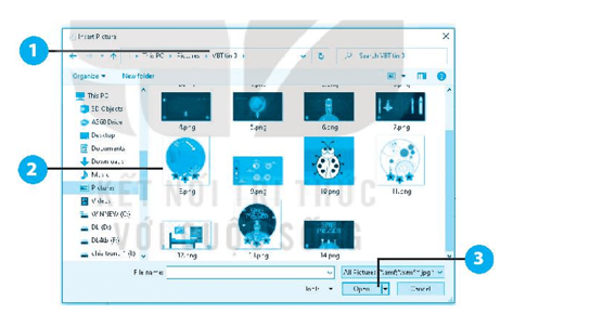 Em hãy quan sát cửa sổ Insert Picture và điền số tương ứng vào ô trống đúng với thứ tự để thêm hình ảnh vào trang chiếu.