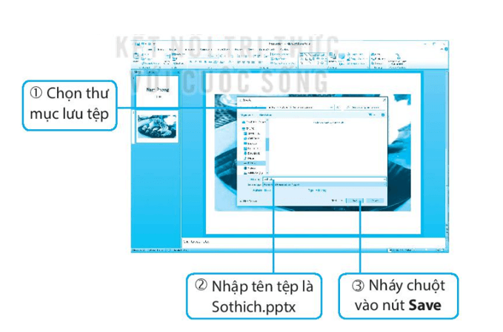 Bước 6: Trong bảng chọn File, chọn lệnh Save và thực hiện như hình sau để lưu tệp với tên Sothich.pptx.