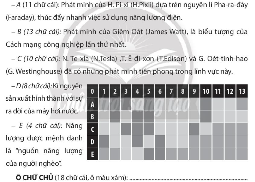 => Ô CHỮ CHỦ: CÁCH MẠNG CÔNG NGHIỆP.