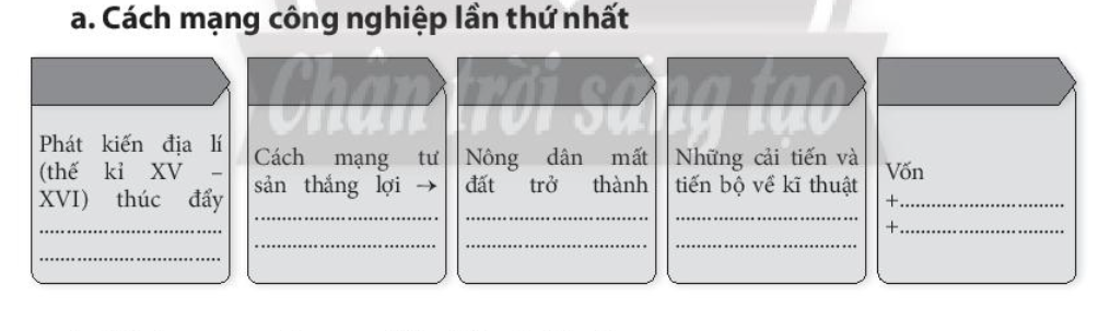Câu 3. Điền vào phần trống trong các ô dưới đây để làm rõ bối cảnh lịch sử dẫn đến hai cuộc cách mạng công nghiệp thời cận đại.