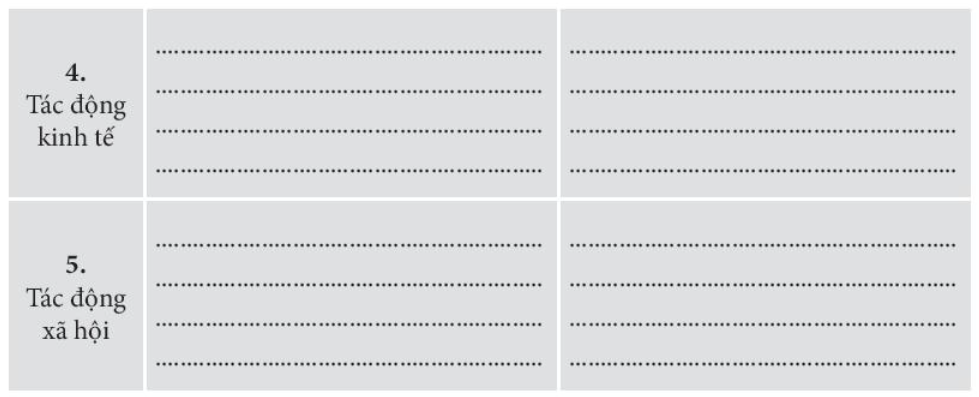 - Thúc đẩy quá trình đô thị hóa. - Góp phần làm thay đổi cơ cấu dân cư và cơ cấu lao động. - Làm sâu sắc thêm mâu thuẫn giữa giai cấp tư sản và giai cấp vô sản. |
