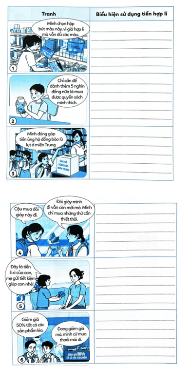 a. Em hãy nêu các biểu hiện sử dụng tiền hợp lí trong các tranh