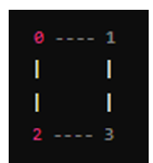 - Đồ thị có bốn đỉnh V={0,1,2,3}.