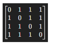 Cho đồ thị G vô hướng với ma trận kề như hình bên. Hãy vẽ đồ thị trên.