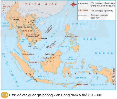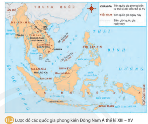 Dựa vào lược đồ 11.1, 11.2 và thông tin trong bài, em hãy mô tả quá trình hình thành và phát triển các quốc gia Đông Nam Á từ nửa sau thế kỉ X đến nửa đầu thế kỉ XVI.
