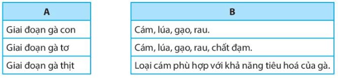 Nối hình ảnh (cột A) với yêu cầu của chuồng trại nuôi gà (cột B) cho phù hợp