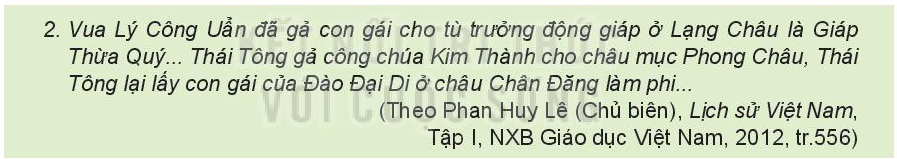 1. Tư liệu 2 cho em biết điều gì về chính sách của nhà Lý đối với các tù trưởng miền núi?